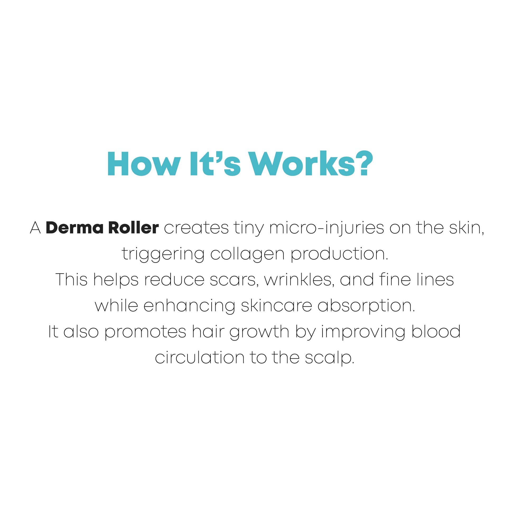 Transform your skincare routine with the Derma Roller! Featuring fine, ultra-precise needles, this tool gently stimulates collagen production, reduces fine lines, minimizes pores, and promotes smoother, firmer skin. Perfect for enhancing absorption of your favorite serums and creams, it’s your go-to for a glowing, rejuvenated complexion. Safe, easy to use, and ideal for all skin types—unlock radiant skin with every roll!